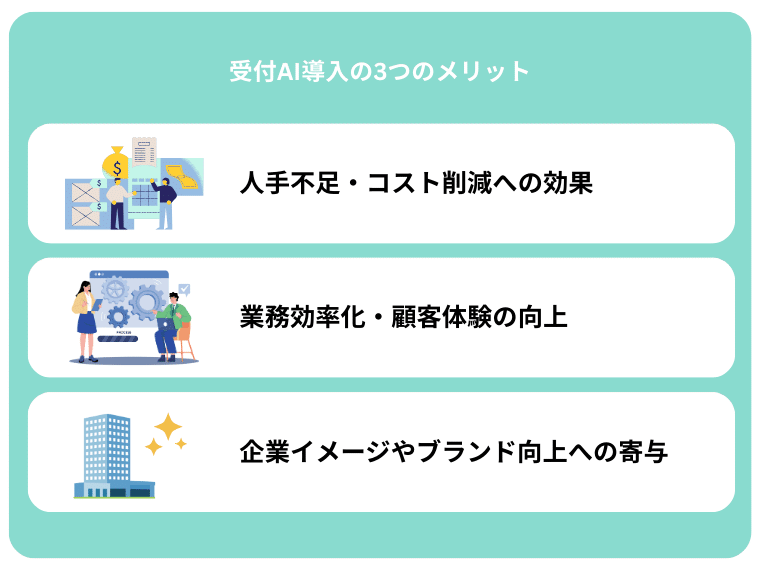 本セクションでは、受付AIがもたらすこの3つのメリットについて詳しく解説していきます。