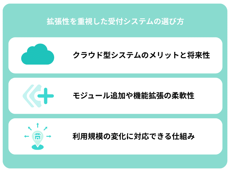 将来的に受付AI化を見据える場合、最初に導入する受付システムには柔軟性と拡張性が求められます。