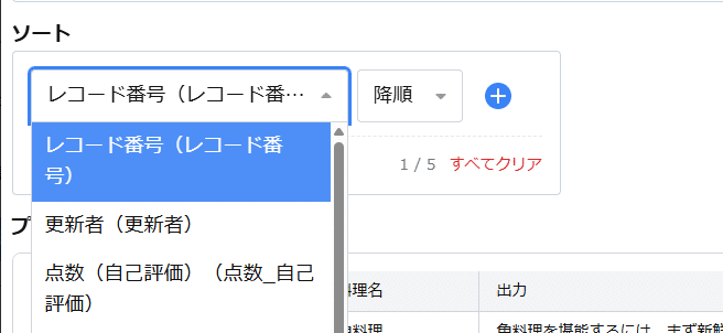 ④レコード一覧で取得するレコードのソート順を設定します。