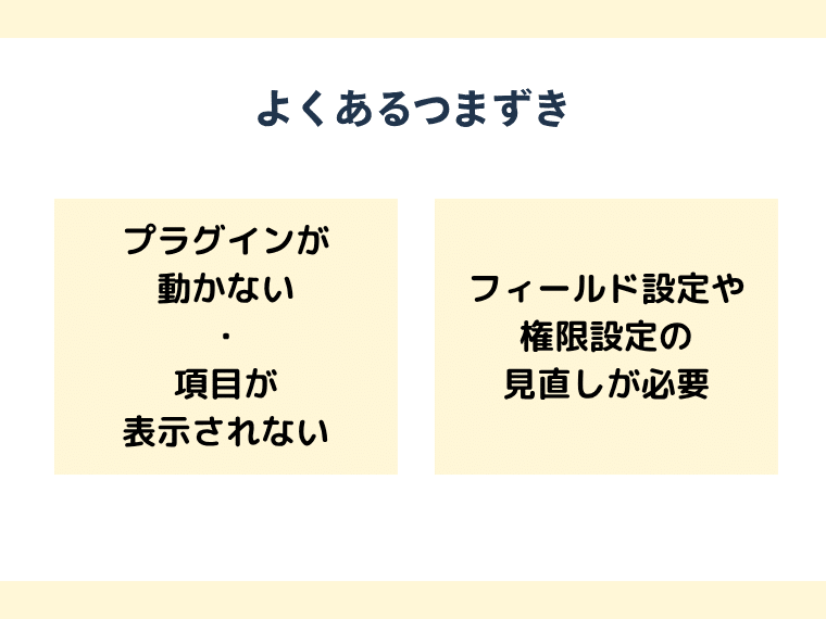 プラグインを導入することでkintoneの活用範囲は大きく広がりますが、導入直後に思った通りに動作しないといったトラブルが発生することも少なくありません。これはkintone本体の設定とプラグインの仕様が噛み合っていない場合や初期設定に不備があることが主な原因です。