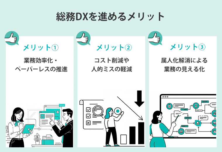 本章では総務部門がDXによって得られる具体的な利点について、3つの視点から詳しく解説していきます。