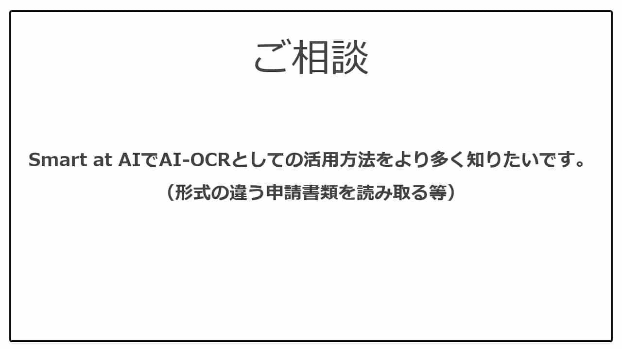 ある農業関連団体の参加者からは、形式の異なる複数の申請書類をAI-OCRで読み取る活用方法について質問がありました。具体的には、医療費補助の申請で提出される病院の領収書を読み取り、保険適用分とそうでないものを仕分けたいというニーズです。