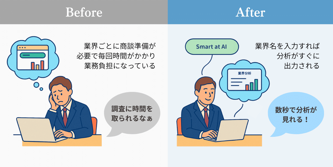 事前に業界の情報や知識を把握できることで、業界の背景を踏まえた提案が可能となり、営業担当の自信にもつながりました。その結果、お客様からの信頼も得やすくなりました。