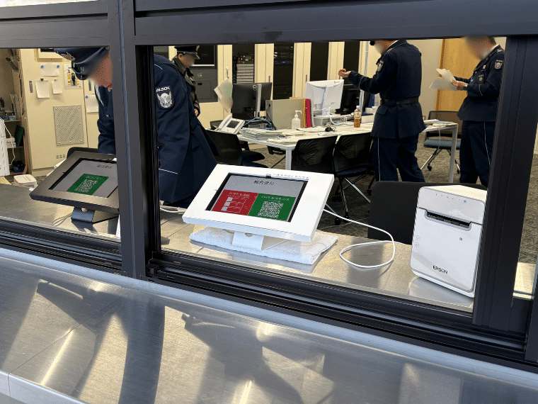 臼沢様:基本的な流れとしては、まず当社の担当者が来訪予定者に対してQRコードを発行し、メールで事前に送付します。来訪者は当日、スマートフォンや紙に印刷したQRコードを持参し、守衛所に設置したiPadで読み取ります。読み取りが完了すると入門証が印刷されるので、それを身につけて入場していただきます。