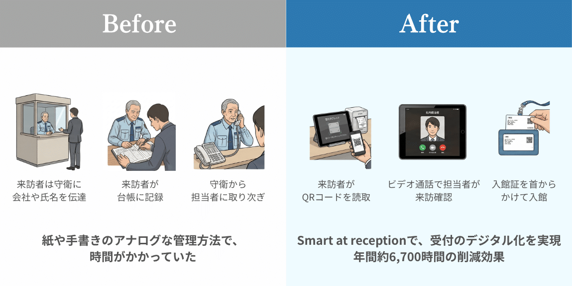 国内13拠点年間20万人の来訪者管理を紙台帳からデジタルへ。年間約6,700時間の来訪者の手続き時間削減を実現